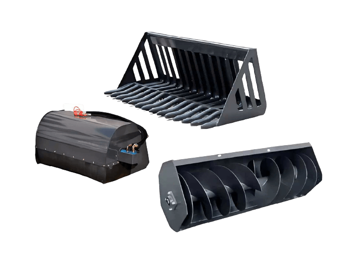 In addition to complete machinery, we provide aftermarket parts and accessories, including rubber tracks, tires, hydraulic components, and attachments compatible with various skid steer and mower models.