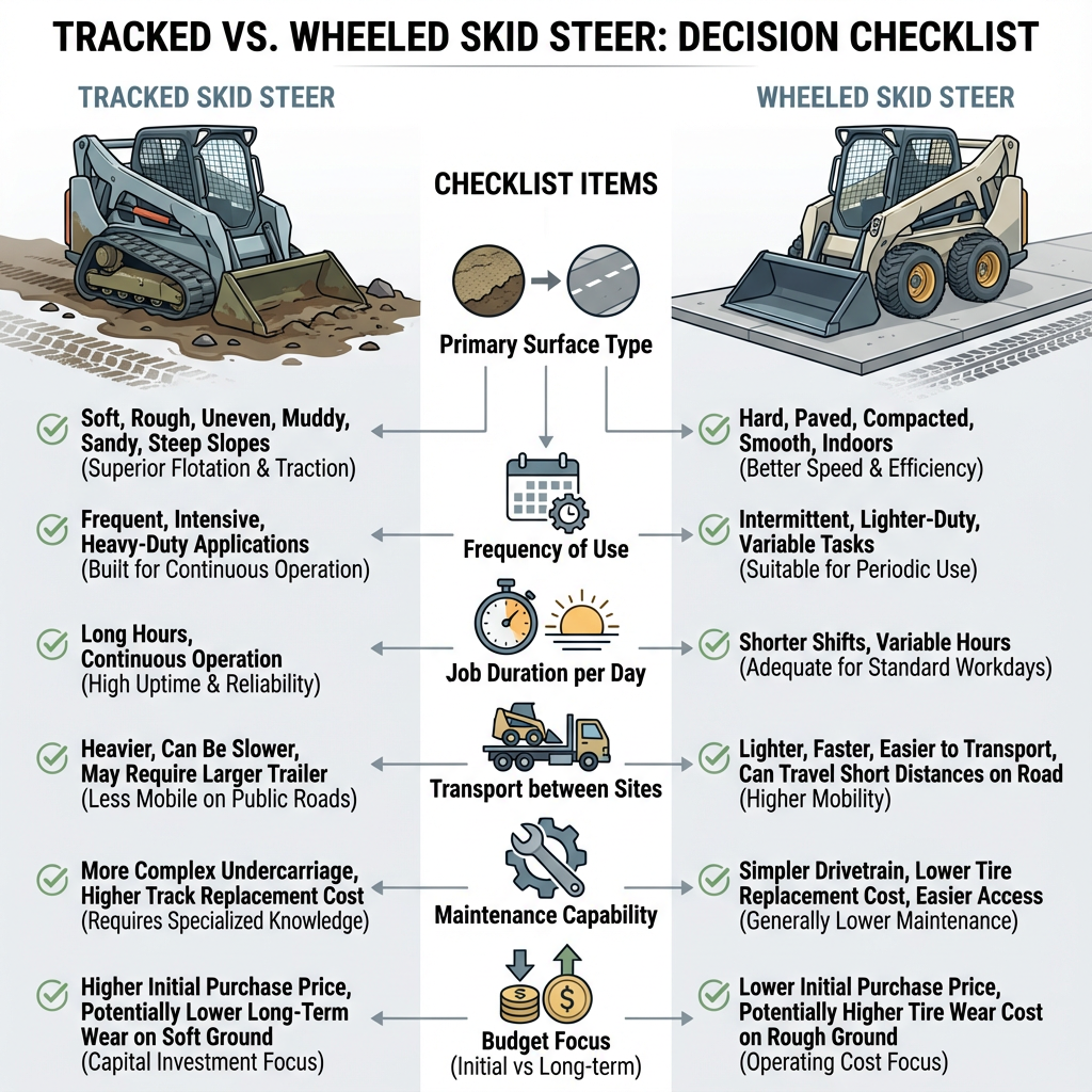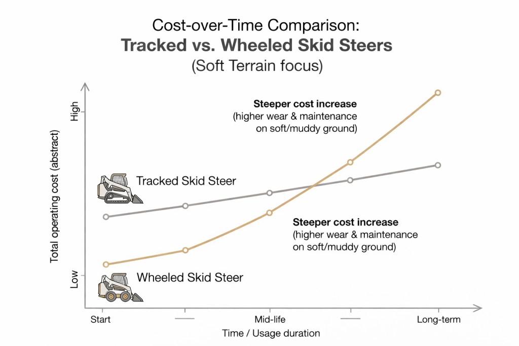 If your work regularly involves mud, slopes, or wet soil, a tracked skid steer may deliver better overall value despite higher initial cost.